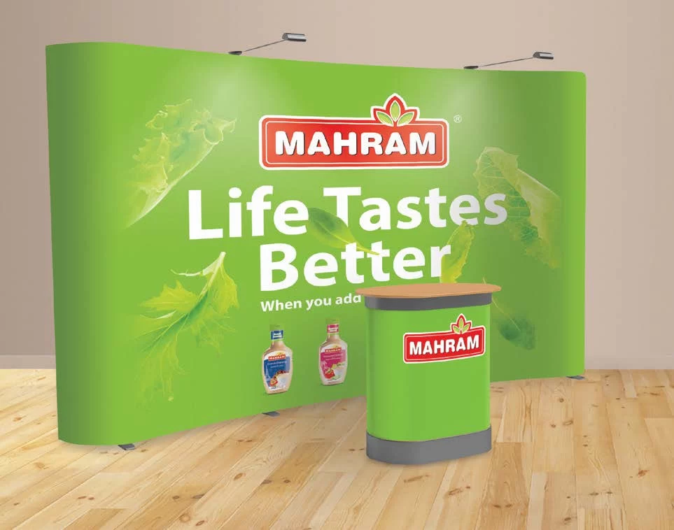 - پاپ آپ: جهت استفاده برای نمایشگاه هایی که فرصت غرفه سازی وجود ندارد و پوشش دهنده دیواره های نسبتا بزرگ.